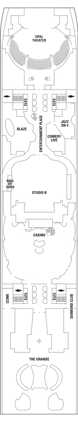 [ Those of you heading to the bottom deck for the casino take the elevator down. There's plenty more attractions up ahead including a performance theater unlike the movie theater on the top decks, and several live entertainment options.